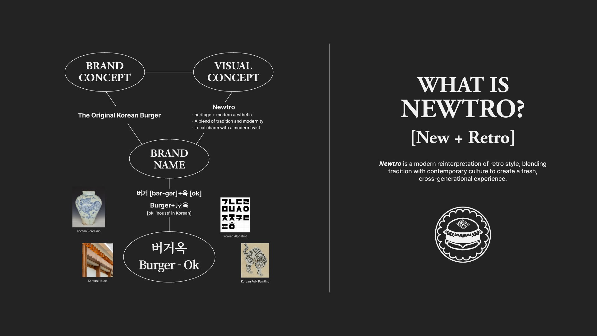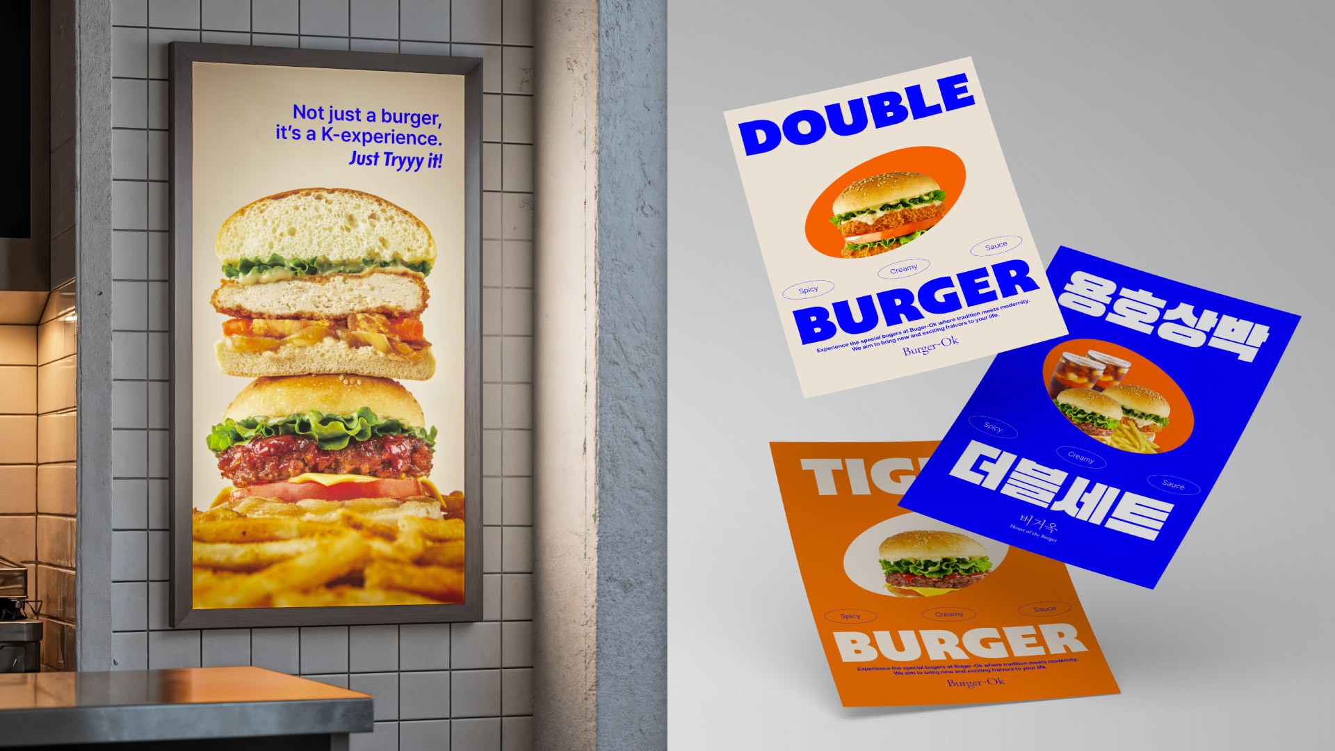 In a market dominated by global franchises, Korean elements have often remained as mere decorations rather than a core strategy. Burger-Ok was created to bridge this gap directly. By analyzing traditional Korean visual language and aesthetics, I extracted key motifs and translated them into a consistent design language. This was established as a brand design system across all touchpoints including BI, packaging, uniforms, marketing, and spatial design. The result is a brand experience that is authentically Korean yet resonates globally.